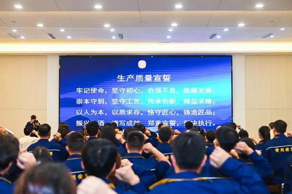 大会进行中,全体与会人员宣读“贵州安酒·生产质量宣言”,以身作则:守初心、承匠心、酿匠品。