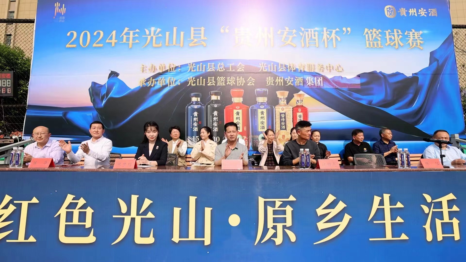 4月13日下午,2024年光山县“红色光山·原乡生活”暨“贵州安酒杯”男子篮球联赛在光之蓝体育公园篮球馆正式拉开序幕。光山县领导杨坤、段明亮、张梦瑶、陈猛、张国伟、汪锋普等出席开幕式。贵州安酒集团销售中心副总经理陈华致辞。在全体奏唱国歌、运动员、裁判员宣誓和文艺节目表演后,贵州安酒代表队和白雀园镇代表队在现场奉上一场精彩的揭幕大战。
