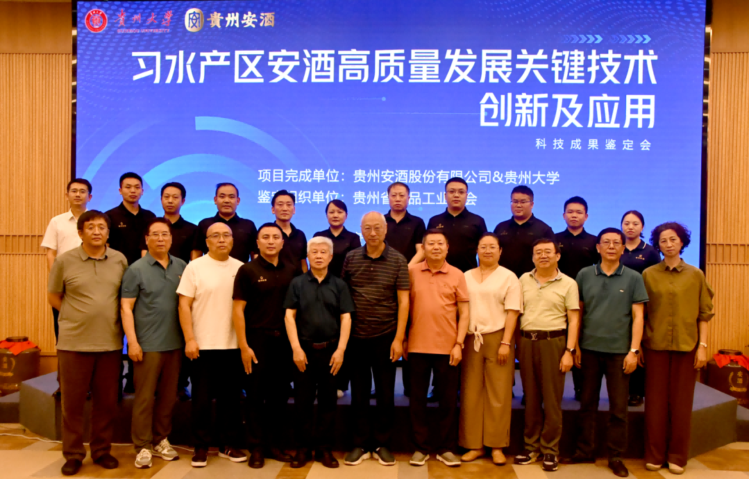来源: 安酒集团 发布日期: 2025-06-136月12日,贵州省食品工业协会组织有关专家在贵州省遵义市对贵州安酒与贵州大学共同完成的“习水产区安酒高质量发展关键技术创新及应用”项目进行科技成果鉴定,该项目涵盖高温大曲有益微生物研究驯化、U形河谷区域白酒贮存陈化、绿色生态环保等领域,整体技术成果顺利通过专家组鉴定!