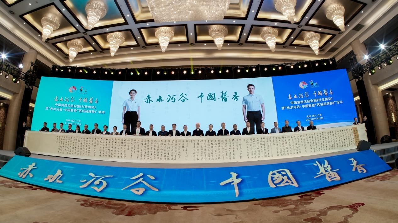 来源: 安酒集团 发布日期: 2025-11-192025年11月18日,中国消费名品全国行(贵州站)活动在茅台国际大酒店隆重启幕,同期举办的“赤水河谷 中国酱香”区域品牌推广活动成为焦点。活动中,贵州安酒与茅台、习酒等业内领军者共同入选“赤水河谷 中国酱香”区域品牌首批企业矩阵,标志着其在产区内的核心地位与品牌公信力获得权威认可。